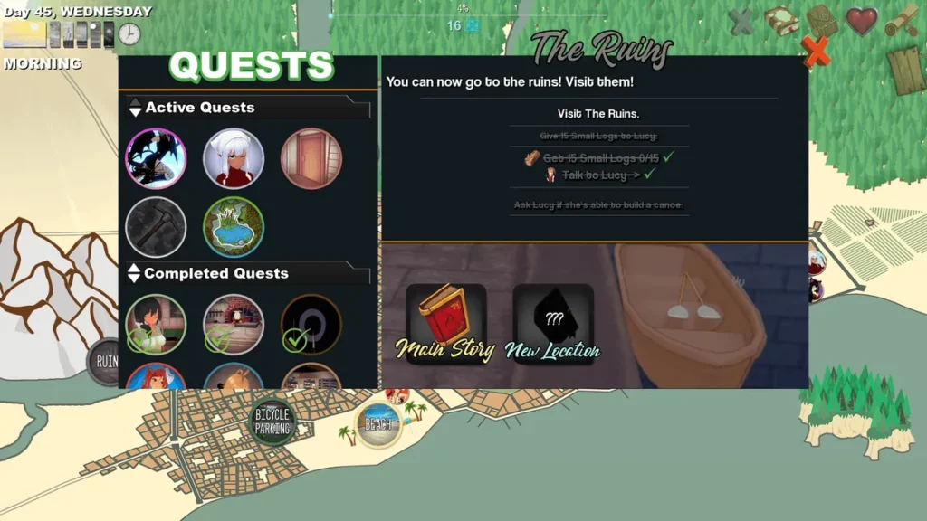 If you think the gameplay here is just a vehicle for adult content, think again. Hero’s Harem Guild is built on a solid foundation of classic adventure-RPG mechanics that are satisfying in their own right. The core loop is deceptively simple but deeply engaging: you explore, you talk to people, you complete quests, and you build your guild. But within that framework lies a surprising amount of depth.
