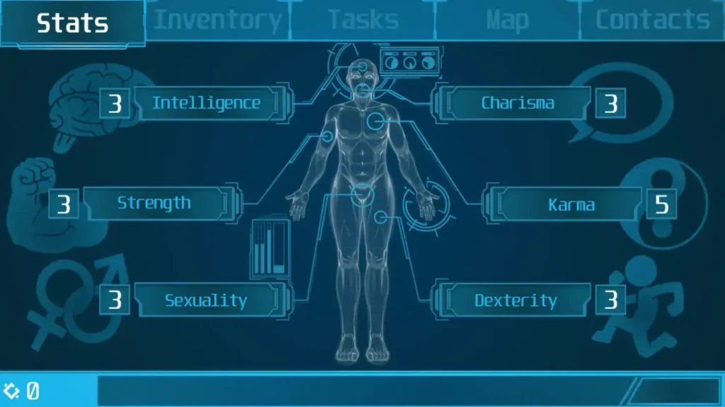 Your capabilities are defined by five core attributes in the Stellar Dream skill trees: Strength, Dexterity, Intelligence, Charisma, and Sexuality. 🧠 Think of them as your personal toolkit for interacting with the world.